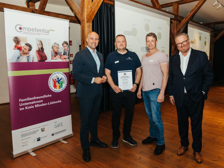 Wir freuen uns über die Auszeichnung als „Familienfreundliches Unternehmen im Kreis Minden-Lübbecke 2023“! Das Kompetenzzentrum Frau und Beruf OWL vergibt die Auszeichnung alle zwei Jahre in Kooperation mit der Industrie-